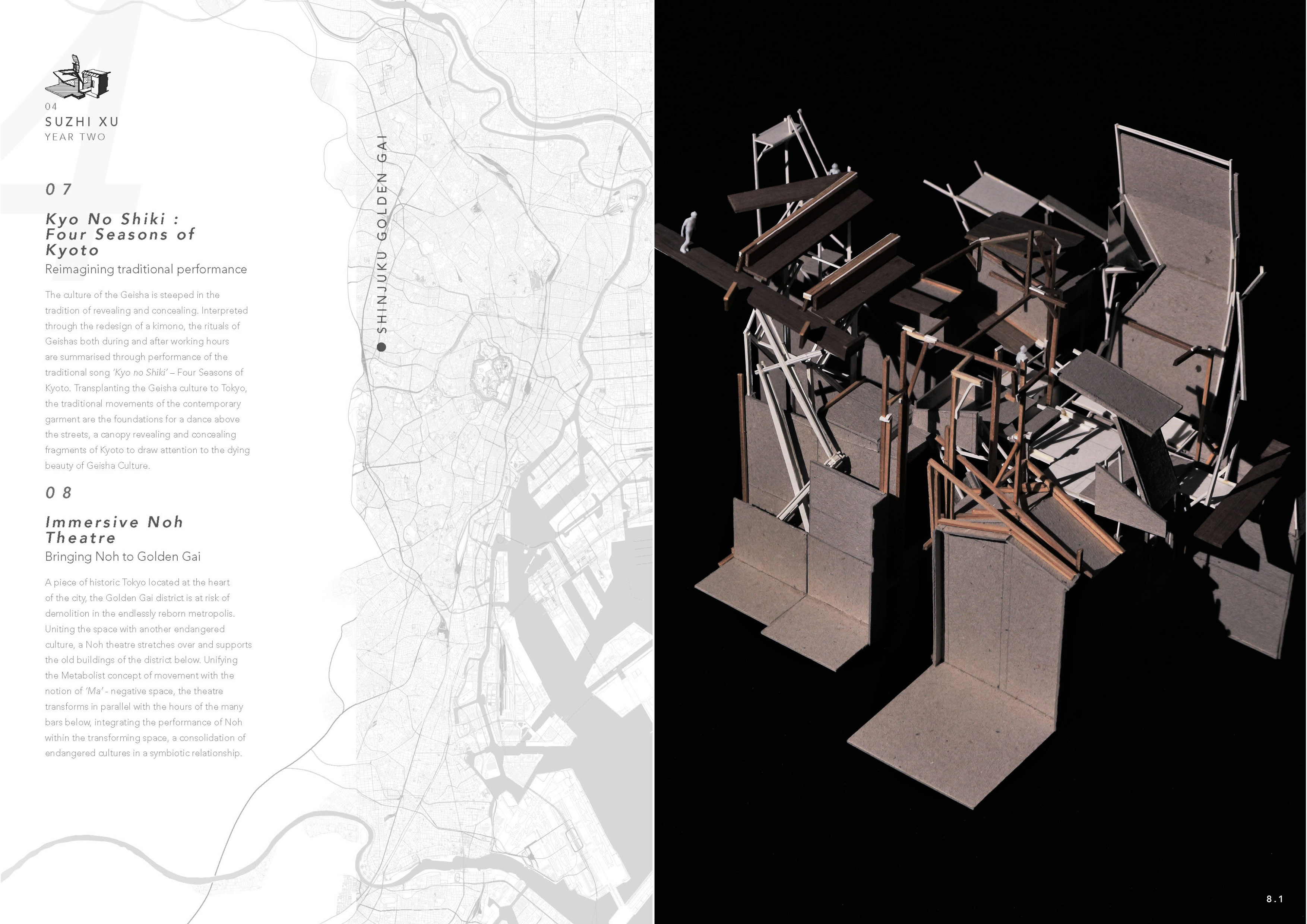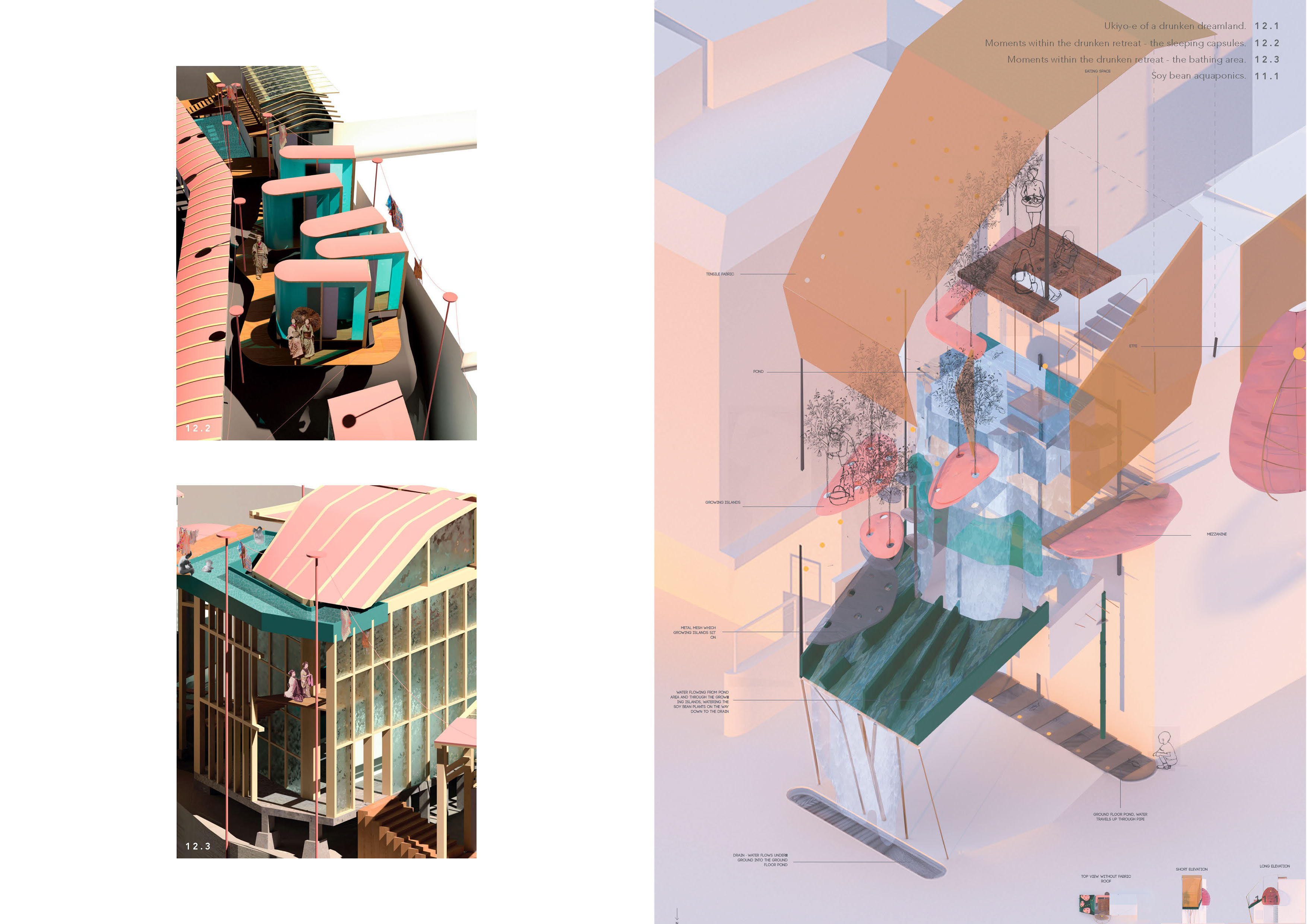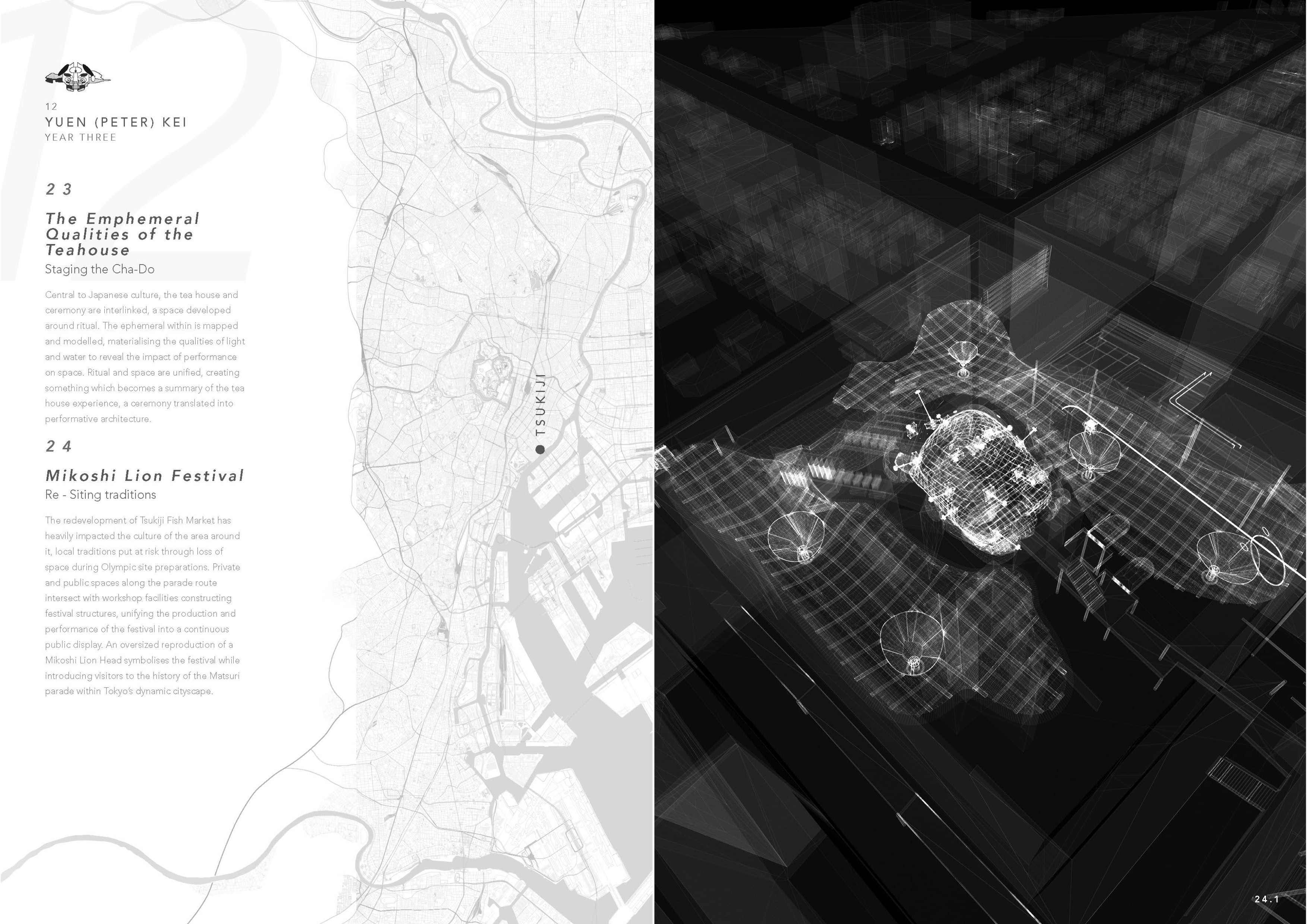 Vestiges of old “Japan-ness” can be found beneath the superficial neon surface: a dialogue between tradition and modernity that is embodied in the engawa, a narrow Japanese veranda that forms an ambiguous passageway between dwelling and garden. Caught between translucent shoji screens and the outer storm shutters, this space exists as a blurred threshold – a space that is neither inside nor out, a platform for conversation or observation of the slow passing of the seasons. This space reflects Japan’s traditional reverence for natural life and the environment. Originally absent from the Japanese language, “nature” was considered so integrated with the everyday experience that there was no impetus to conceptualise it as its own entity.